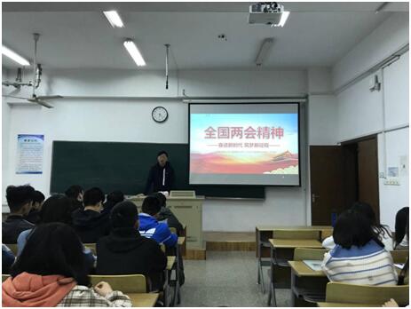 4月15日晚6点,77779193永利官网开展了“不忘初心跟党走,牢记使命学担当”——聚焦国事,致敬先锋系列党日活动第一讲。本次的党日活动以主题宣讲会的形式开展,给18级所有学生,17级优秀团支部,以及所有入党积极分子普及两会知识,带领大家一起致敬王继才等楷模人物,学习爱国奉献精神。作为主题宣讲会的第一站,我院16级辅导员孙浩老师在电子电工大楼516为18级视传班的同学们开展了第一场党日活动宣讲会。