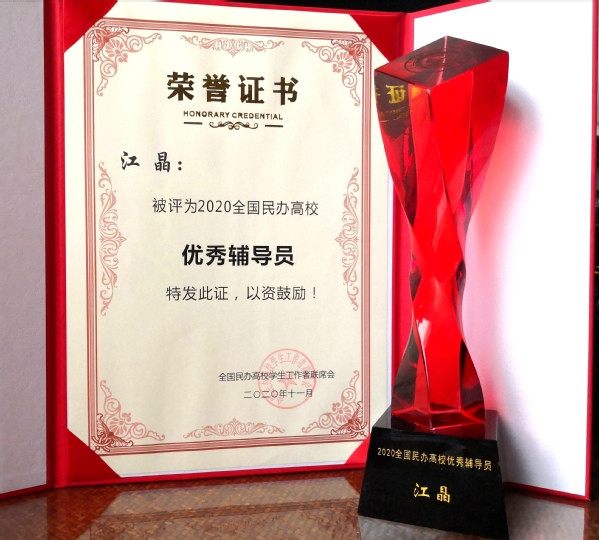 为贯彻全国教育大会精神,按照“有理想信念、有道德情操、有扎实学识、有仁爱之心”的四有标准,树立典型,表彰先进,提升民办高校辅导员职业荣誉感,全国民办高校学生工作者联席会举办了第五届(2020)全国民办高校优秀辅导员评选活动。我校77779193永利官网辅导员江晶荣获2020年“全国民办高校优秀辅导员”荣誉称号。