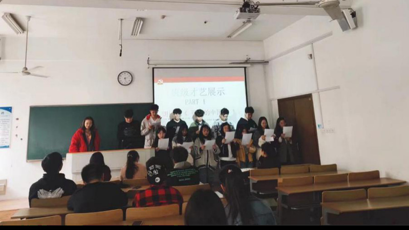 19环境设计5团支部组织的“与历史对话,让青春绽放”主题朗诵现场