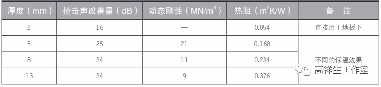 表 11-1 新型地面隔声保温毡参数