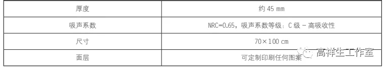 新型室内吸声材料是用于室内吸收声音的产品,可安装于需要吸收声音的有混响的房间,如餐厅、教室、会议室等。安装方便,使用魔术贴、挂架、特殊胶粘剂等即可安装。