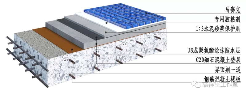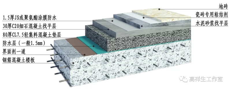 图 12-2-5 轻集料垫层地砖地面三维图(专用胶粘剂)