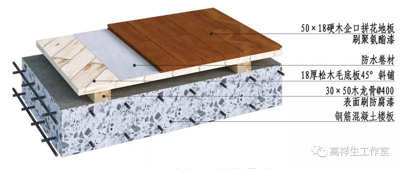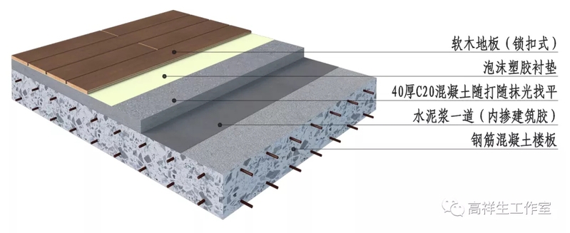 图 12-4-18 平铺强化地板地面三维图(松木毛地板)