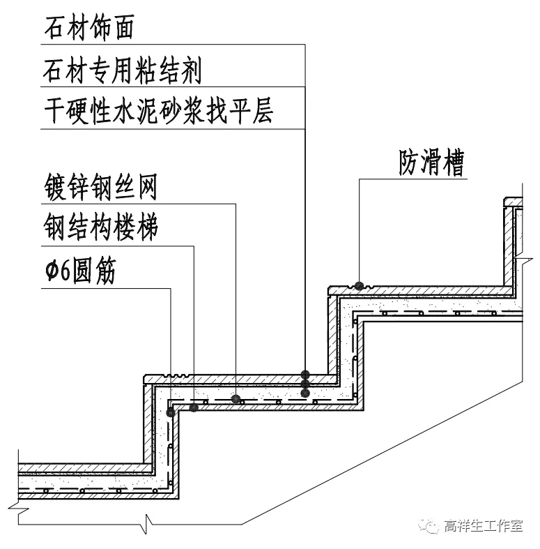 图 12-11-4 钢结构楼梯石材地面构造节点图