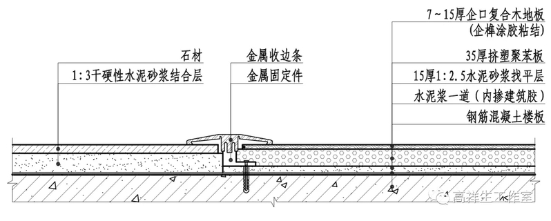 图 12-10-15 石材与木地板交接地面构造节点图(U 形收边条)