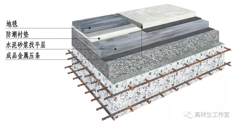 图 12-10-24 石材与地毯交接地面构造节点图(L 形收边条 + 倒刺条)