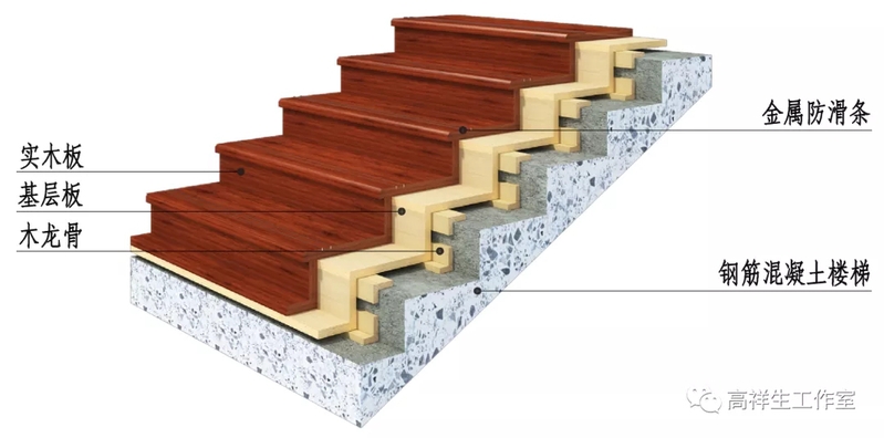 图 12-11-11 混凝土楼梯实木地面构造节点图
