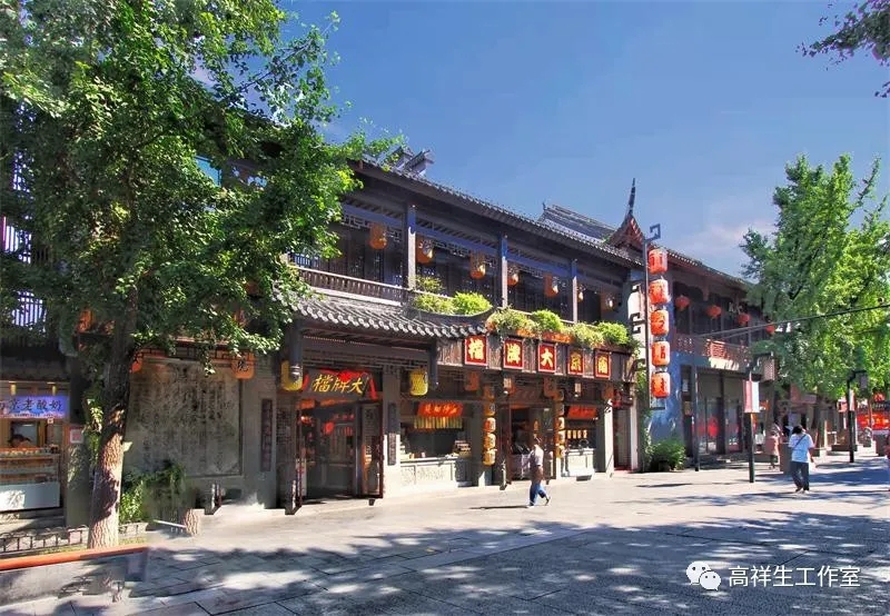 原贡院街的商铺在减少,而在大石坝街的商铺,特别是餐饮建筑增加了。在这里有晚晴楼、天圆楼、老盛庆、金陵春、秦淮人家、咸亨酒店等大石坝街的商铺更加注重了商铺的细部装饰,大多采用回字纹、万字纹。店招一律由名家书写,店招的形式多数竖向布置……都是新中式风格。很显然大石坝街商铺的风格也延续了东市、西市的商铺风格。