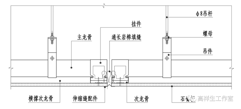 图 13-1-62 顶棚伸缩缝(二)构造节点图