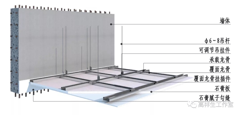顶棚也称天花、天棚或吊顶,在室内占有较大的界面,顶棚的装饰装修对于整个空间的装修效果有相当大的影响,同时对于改善室内物理环境(光照、隔热、防火、音响效果等)也有显著的作用。
