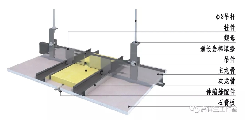 图 13-1-52 双层石膏板顶棚伸缩缝三维图