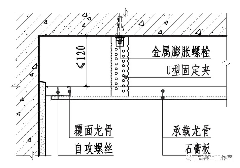 图 13-1-18 U 型固定夹顶棚构造节点图(一)