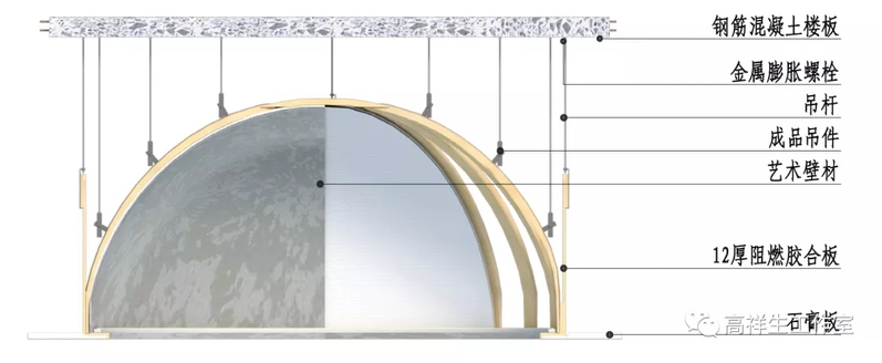 顶棚装饰构造要根据功能要求、外观形式、饰面材料等选择。