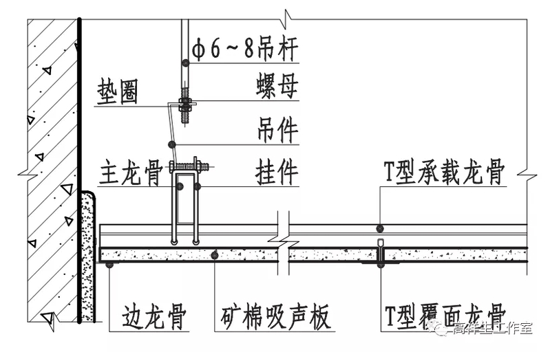 图 13-2-3 T 型单层骨架顶棚构造节点图(一)