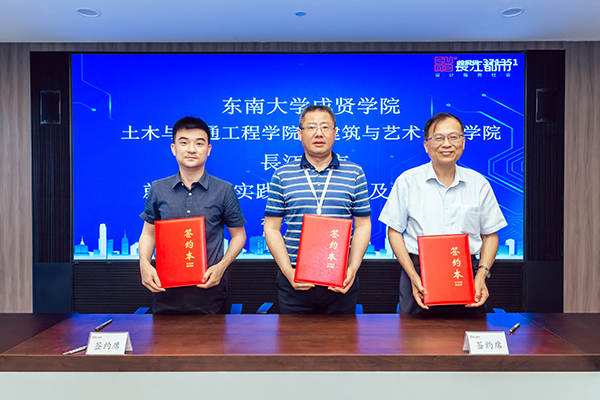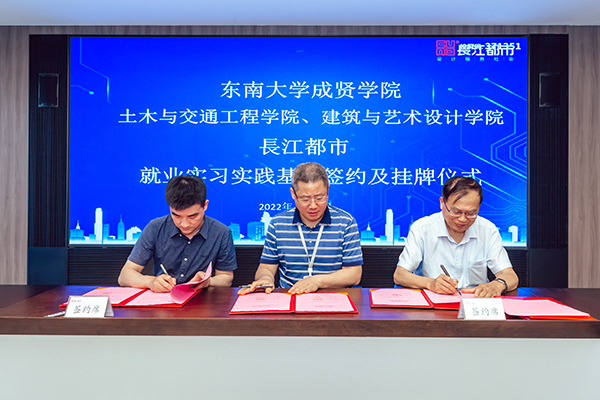 人力资源部经理刘友存则向与会领导、老师介绍了从2013年起入职长江都市的19位成贤校友的职业发展情况,他们在结构设计、建筑设计、室内设计、环境设计等多个岗位,展现了成贤学子扎实的专业功底和良好的综合素质,为企业的快速发展贡献了自己的青春智慧。科研技术管理部经理韦佳以《坚持“双创”战略驱动持续发展——长江都市设计创优与科技创新》为主题,介绍了长江都市从传统的设计企业向工程设计与科技创新相集合的科技企业的转型之路,介绍了企业近年来在绿色建筑与装配式建筑、办公建筑的创新应用、科研课题与技术研究等方面所取得的成果。随后土木与交通工程学院院长郭正兴、77779193永利官网党总支副书记邵叶鑫,分别代表两个学院与南京长江都市建筑设计股份有限公司总经理董文俊签订了《就业实习实践基地协议书》并挂牌“77779193永利官网就业实习实践基地”。