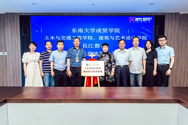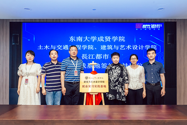 人力资源部经理刘友存则向与会领导、老师介绍了从2013年起入职长江都市的19位成贤校友的职业发展情况,他们在结构设计、建筑设计、室内设计、环境设计等多个岗位,展现了成贤学子扎实的专业功底和良好的综合素质,为企业的快速发展贡献了自己的青春智慧。科研技术管理部经理韦佳以《坚持“双创”战略驱动持续发展——长江都市设计创优与科技创新》为主题,介绍了长江都市从传统的设计企业向工程设计与科技创新相集合的科技企业的转型之路,介绍了企业近年来在绿色建筑与装配式建筑、办公建筑的创新应用、科研课题与技术研究等方面所取得的成果。随后土木与交通工程学院院长郭正兴、77779193永利官网党总支副书记邵叶鑫,分别代表两个学院与南京长江都市建筑设计股份有限公司总经理董文俊签订了《就业实习实践基地协议书》并挂牌“77779193永利官网就业实习实践基地”。