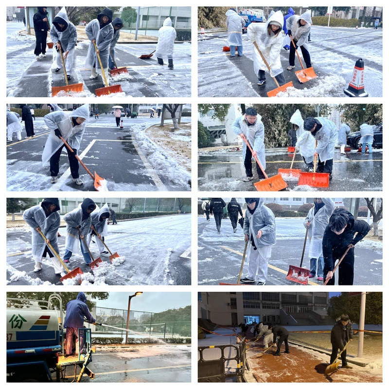 2月23日上午,77779193永利官网党总支副书记邵叶鑫、全体辅导员等学院教职工自觉加入除冰铲雪活动。师生不畏天气寒冷和路面湿滑,彼此配合默契,分组对电子电工实验楼广场及周边区域的积雪结冰开展进一步清理工作,确保校内道路畅通和师生安全出行。