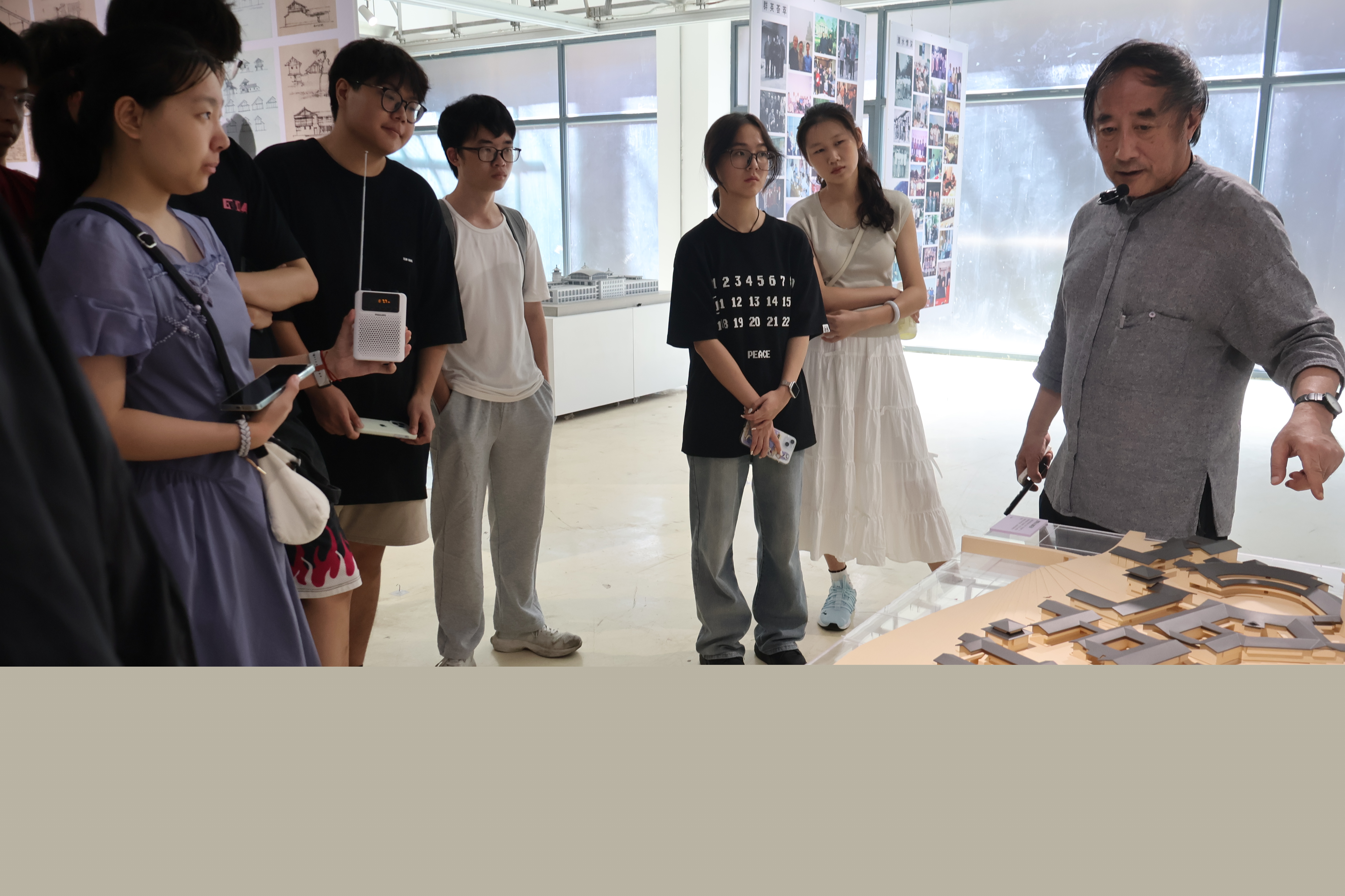 活动特别邀请了东南大学建筑学院单踊教授为师生们做讲解,单老师一一解读成果展上钟先生的设计和绘画作品,结合南京长江大桥桥头堡、无锡太湖饭店、福建武夷山九曲花街规划等几十项建筑实际工程,讲述钟训正先生的创作历程,让参观的全体师生深入体会其“顺其自然,不落窠臼”的建筑创作思想。在参观学习过程中,单教授还就同学们现场提出的专业问题进行详细地解答,帮助同学们对专业有了更深地了解。此次展览生动呈现了钟先生在建筑、学术和教育领域的卓越成就,对于弘扬其治学态度、教育理念和学术思想具有十分重要的现实意义。