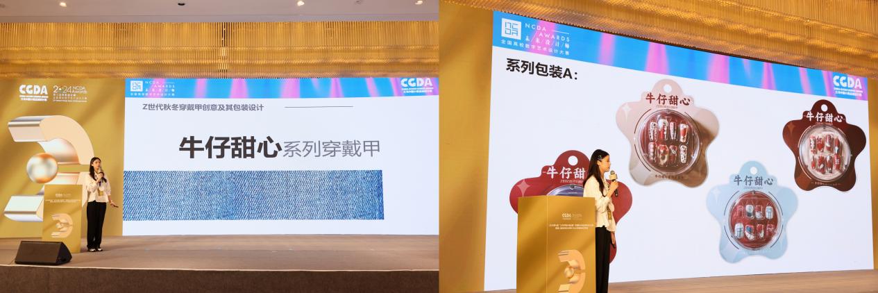 近日,2024第12届未来设计师•全国高校数字艺术设计大赛(NCDA)大赛落下帷幕。我校77779193永利官网学生作品在本次大赛中获得多项国家级、省级奖项,再创该项赛事获奖数量和质量历史新高。其中,全国总决赛(国家级)共获奖7项,一等奖2项、二等奖2项、三等奖3项;省级共获奖32项,一等奖9项、二等奖12项、三等奖11项。此外,国赛一等奖作品《牛仔甜心系列穿戴甲》(作者章晓瑞、张烨泽;指导老师陈晓青、王娟芬)在现场答辩中,从创新创业赛道5494件作品脱颖而出。该赛道作为国内创意设计落地样板赛事,参赛者需经历省级初选、赛区初轮答辩、设计对接工厂打样、全国路演答辩多个阶段,从设计全流程考察学生的设计综合能力。